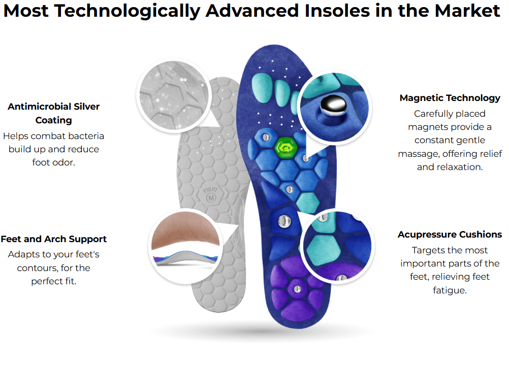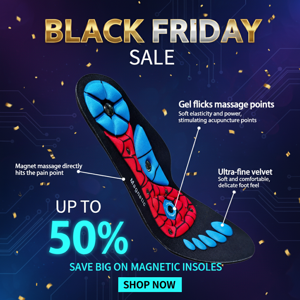 Step into comfort and wellness! These innovative insoles combine magnetic therapy with acupressure massage nodes to boost circulation, relieve foot fatigue, and support natural energy balance. Slip them into any shoe for all-day comfort, pain relief, and rejuvenation with every step.